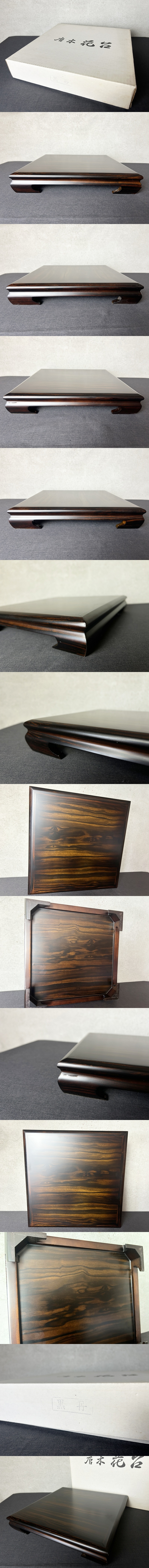 唐木製 黒檀 花台 高台 長方卓◇美杢/杢目/飾り台/盆栽/香炉台/華道具/茶道具/香道具/木工芸/時代/骨董/古美術 收藏