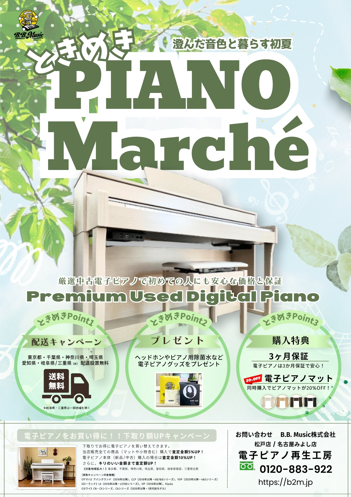 《配送設置無料/中古電子ピアノ専門店 B.B.Music 2026 ときめきピアノマルシェ》 お買い得な「Premium Used Digital Piano」。初めての人にも安心な価格と3ヶ月保証。 中古電子ピアノ本体ご購入特典・快適演奏グッズ(ピアノ用除菌水・新品ヘッドホンなど)をプレゼント!