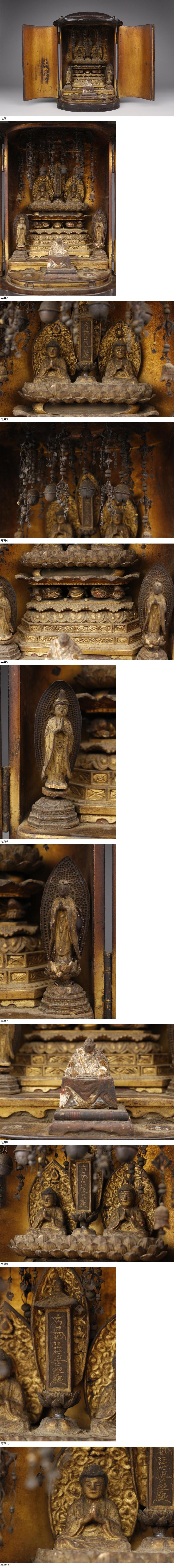 【LIG】時代仏教美術 本隆寺 木彫金彩 一塔両尊像 日蓮聖人 黒塗時代厨子 寺院引取品 2603.385 收藏