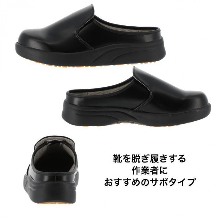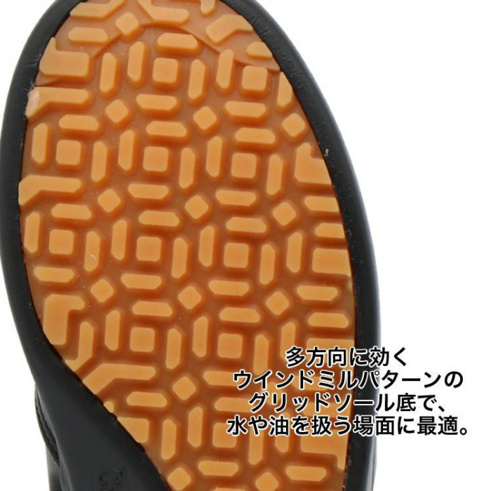 | 滑りにくい防滑グリッドソール。底面の意匠は多方向に効くウインドミルパターン。つま先は3Eウイズです。靴を脱ぎ履きする作業者にお勧めのサボタイプです。 【注意事項】 ※滑りにくい底意匠ですが、使用条件によっては滑る場合もございますので、十分ご注意ください。 |