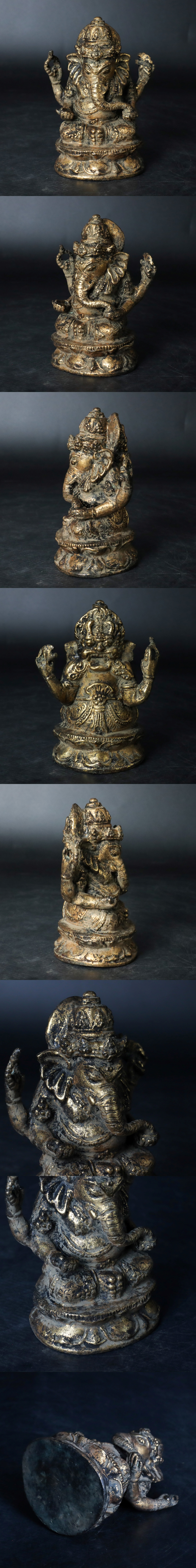 象頭の神ガネーシャを象った多臂像で、蓮台上に坐す姿が印象的な一作です。