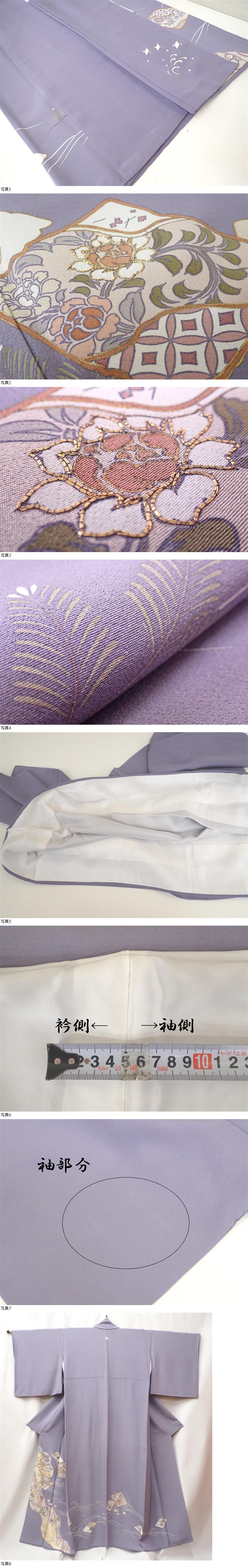 秀品 正絹 色留袖 一つ紋 藤色 身丈150cm(+11cm) 裄丈66cm 金駒刺繍 | ||||