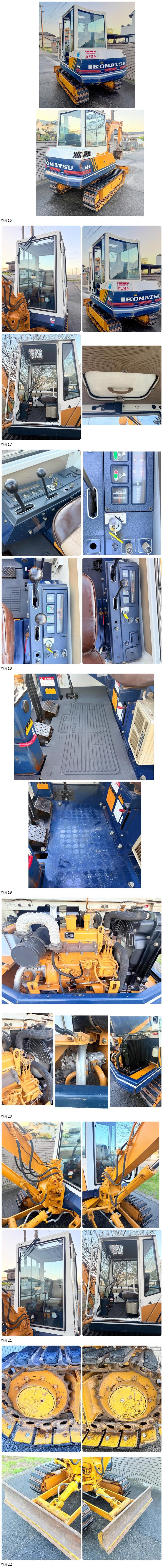 ◇◆◇ 美品です。元の状態がわかるように洗車のみで写真を撮りました。塗装はしていないです。エンジンは純正色のままで、すごくきれいな状態です。新品の時のラベルも付いています。キャビンの中もすごくきれいな状態です。ワンオーナーだと思われる状態です。新品購入する時にもらえるカタログ、取扱証明書もございます。なかなか出てこない状態のユンボです。全体的にサビとかはないので倉庫の中に保管していた物だと思います。ヒーターは付いているので雪かきにはおすすめします。ヒーターは始動チェック済み。鉄クローラーゴムパッド付きです。すぐ使える状態です。エンジン調子いいです。バケット回りガタ付きが少ない、キャビンのドアは付いていないですが、後付けの物がありますので取り付けは可能です。これからエンジンオイル交換、基本的な点検はをしてからお客様にお届けします。大事にすれば長く使用できる物だと思います。必要でしたら、バケットとハイド版は無料で塗装は可能です。純正のシート少しやべれておりますが使用するには問題ありません。