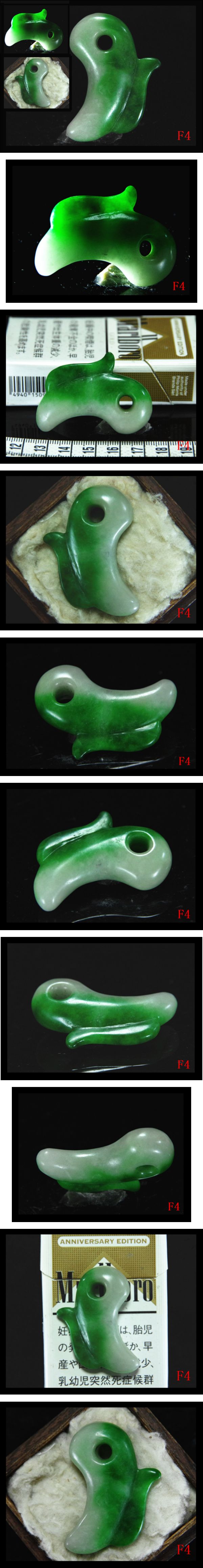 【F4】古墳期★透明感抜群アップルグリーン濃翠緑色★極上質ろうかん硬玉翡翠製★迫力極希少背鰭付き異状勾玉★検古墳出土器祭祀仏像原石 收藏