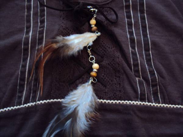 東京のお店で購入した、上品なブラウン系のタンクトップになります。サイズの方は、Lサイズです。新品未使用品になります。お首元や腕元の縁取りが事細かくされていて、とても上品で素敵です。お洋服の中央部分にございますアジアンデザインの羽根は、取り外しも可能です。スエード調の上品なリボンや、ベロア使いが素敵です。1着でも重ね着用のポイントとしてもお使い頂けるので、重宝します。全体的に落ち着いたデザインになりますので、パンツやスカートなどのボトムスにも合わせやすいです。当方、ただいま引越しの準備に伴う、荷物の整理を行っております。どうぞ宜しくお願い致します^^*