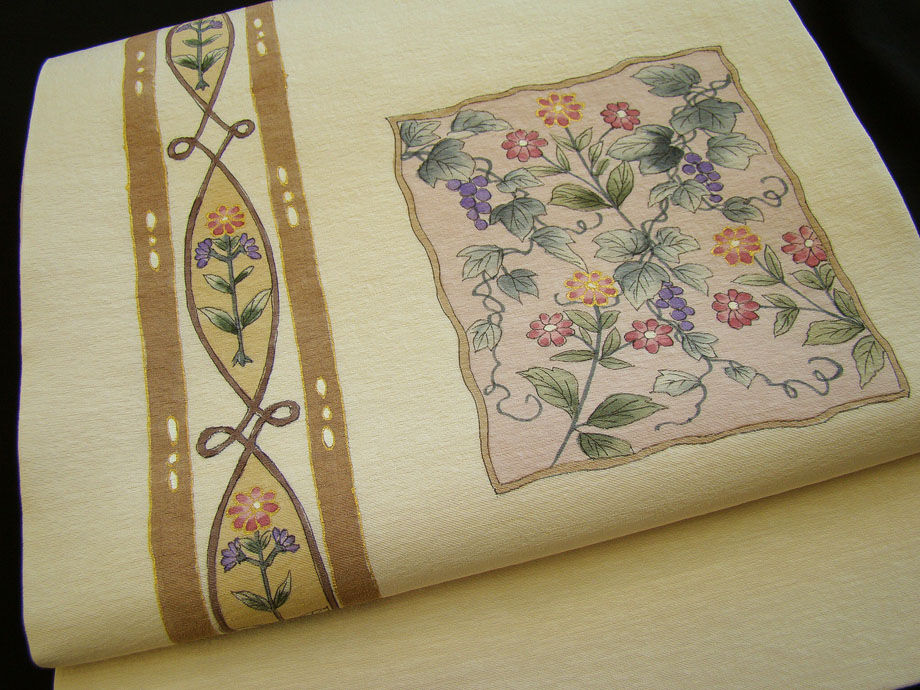 値下げ!!時代屋 美品 紬 小紋用 紬地 染なごや帯 正絹 開き仕立 Ns1029 收藏