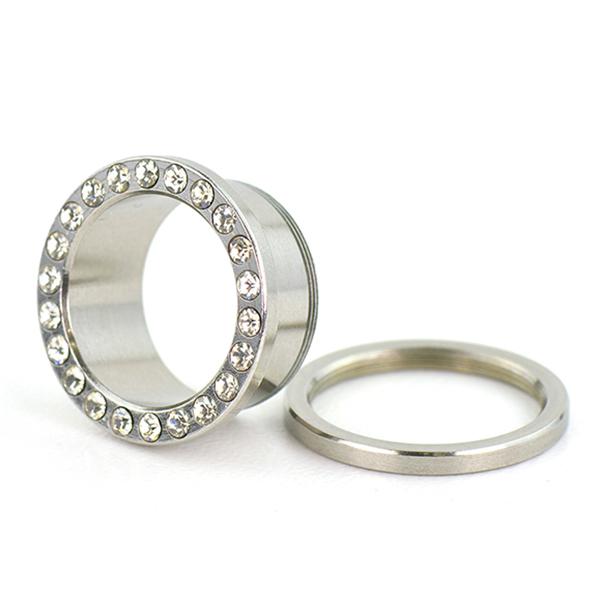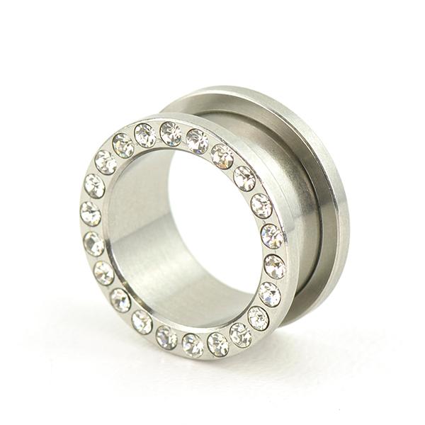 フレッシュ トンネル ラインストーン仕様 23/32インチ(18mm) サージカルステンレス316L ボディーピアス ジュエル付 イヤーロブ 23/32inch