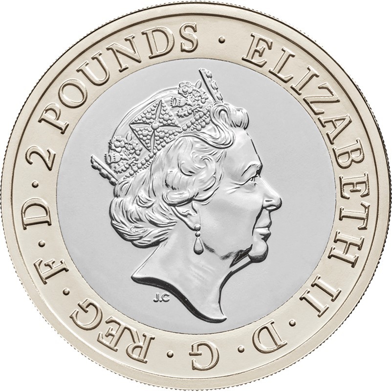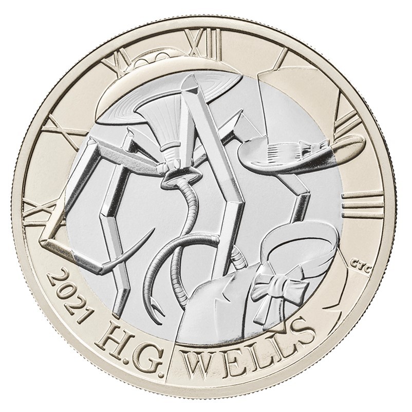 2021 イギリス H・G・ウェルズ没後75周年 2ポンド 2色貨 使用済み切手付き 收藏