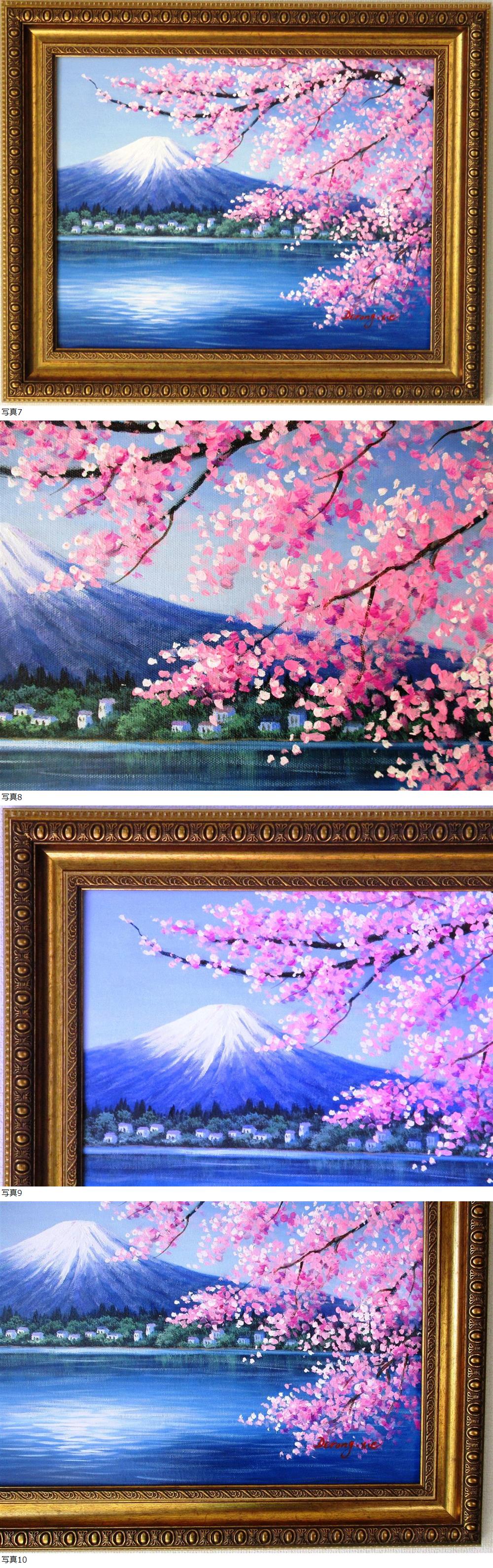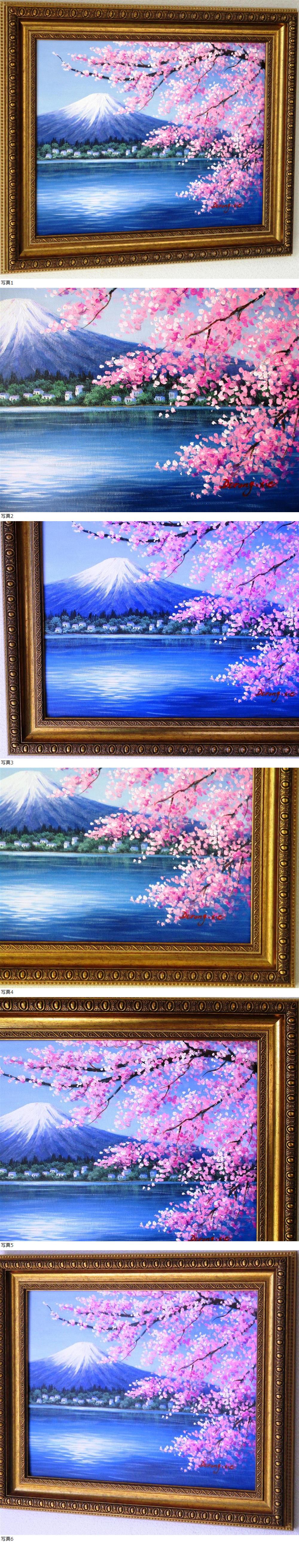 【真作】謝 徳栄 桜が見ごろです。富士山絵画 油絵 風景画 河口湖からの桜富士 F6 WG311  收藏