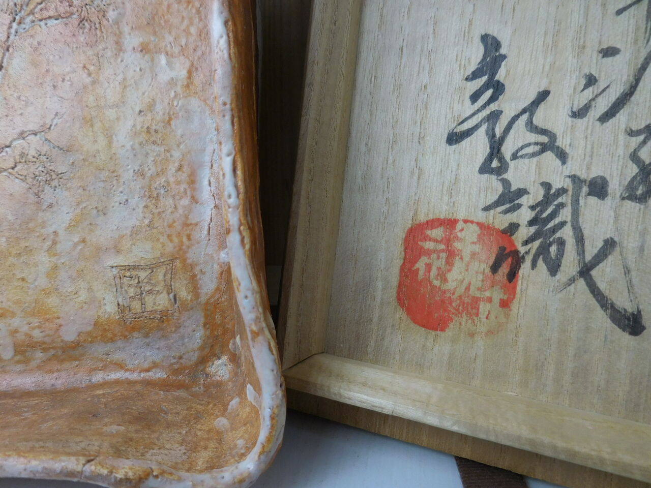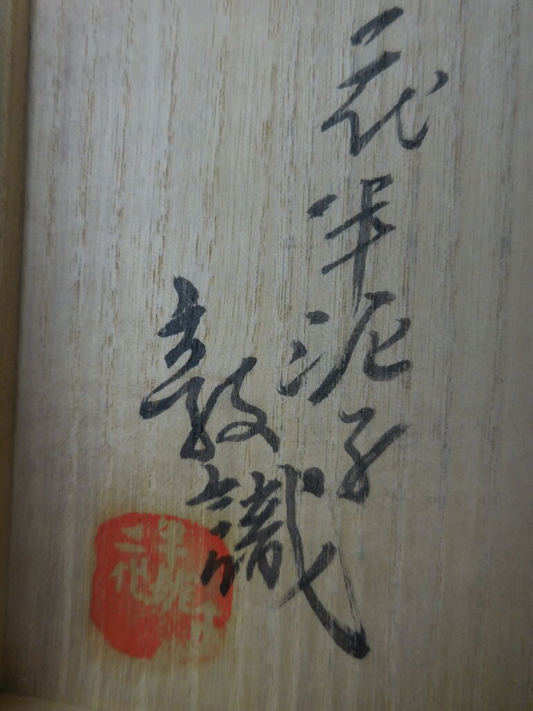 | コメント コレクションを処分しています。 出品物は時代物、骨董品です。 目に付く傷みや欠点は明記していますが、 説明しきれない経年による汚れやスレ、 使用感などは否めません。 また見落としがあるかも知れません。 骨董品にご理解のある方のご入札をお願いします。 ご不明な点はあらかじめご質問下さい。 商品説明 高さ約5.5~6㎝×縦・横約23㎝。 但し多少の誤差はご了承下さい。 味わい深い川喜田半泥子の角皿と思われます。 見込みの花絵の脇に『半』の銘が入っています。 指で味いた音はやや甘いですが、 ホツやニュウなどはありません。 共箱裏には、二代 半泥子の鑑定書きがあります。 ご注意 出品のカテゴリーやタイトル欄・説明文に 記載の時代や名称、感想等は、 あくまでも当方の見立てであり 誤りがあるかもしれません。 商品の状態や年代判断などは、 画像を良くご覧になり、ご納得の上でご入札下さい。 ノークレーム・ノーリターンでお願いします。 自己紹介欄もご覧下さい。 送料 『ゆうパック』送料は当方で負担します。 |