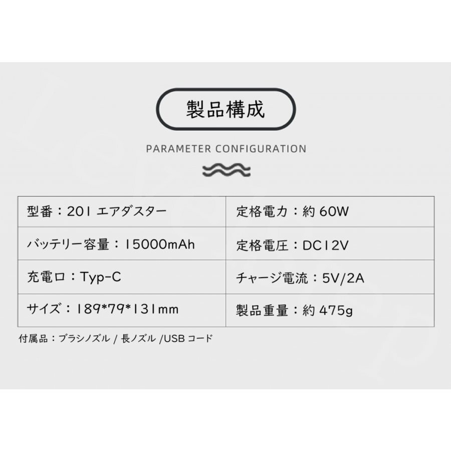 (A) ハイパワー 電動エアダスター 充電式 強力 エアーダスター 送風 エアー スプレー キーボード PC 掃除 OA機器 LED付 ノズル付 收藏