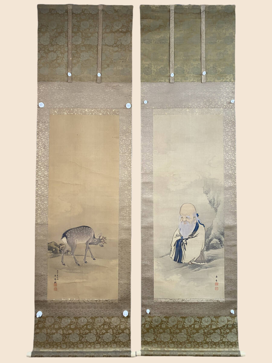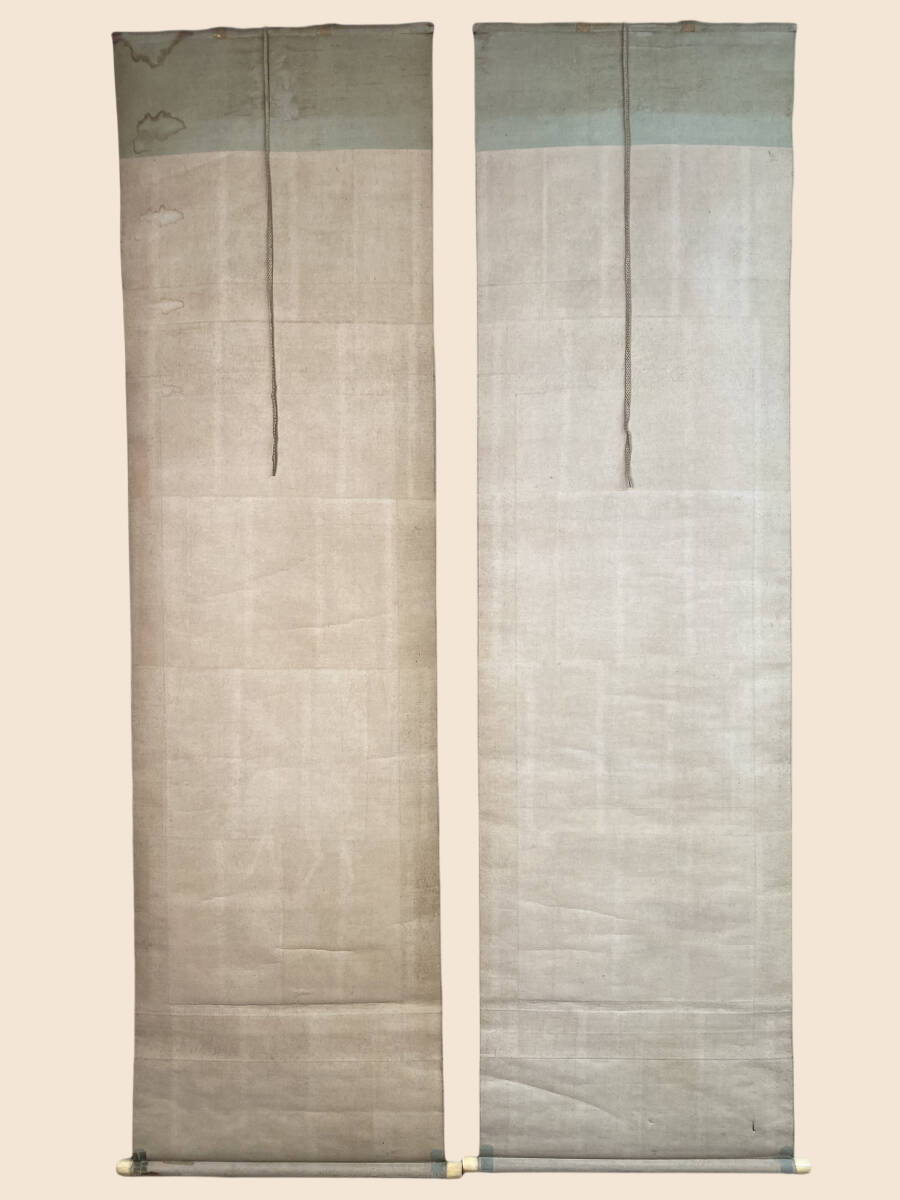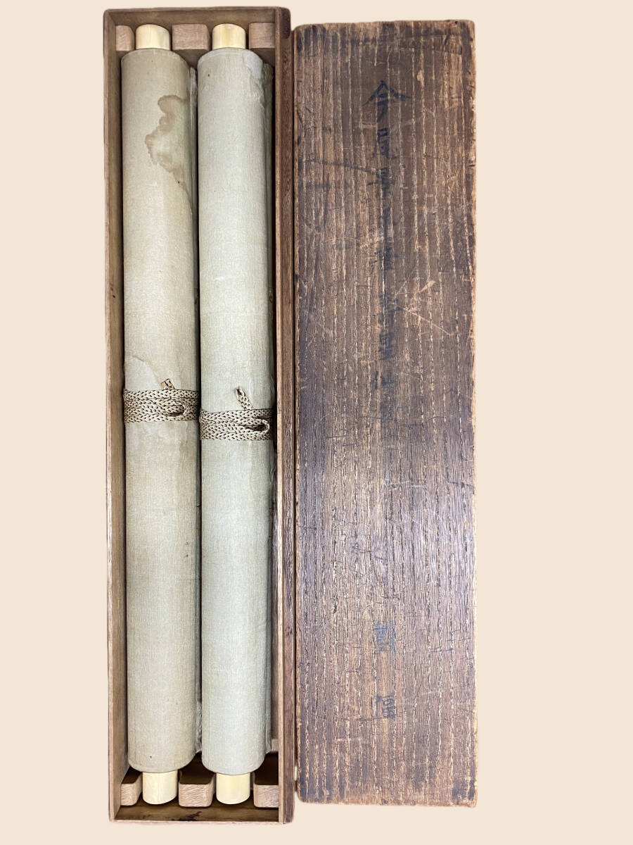 掛軸の軸先ですが、配送中の振動・気温・経年劣化等で外れてしまうことがあります。軸先の外れは、返品の対象にはなりません。大変お手数ですが、お客様ご自身での修復をお願い致します。