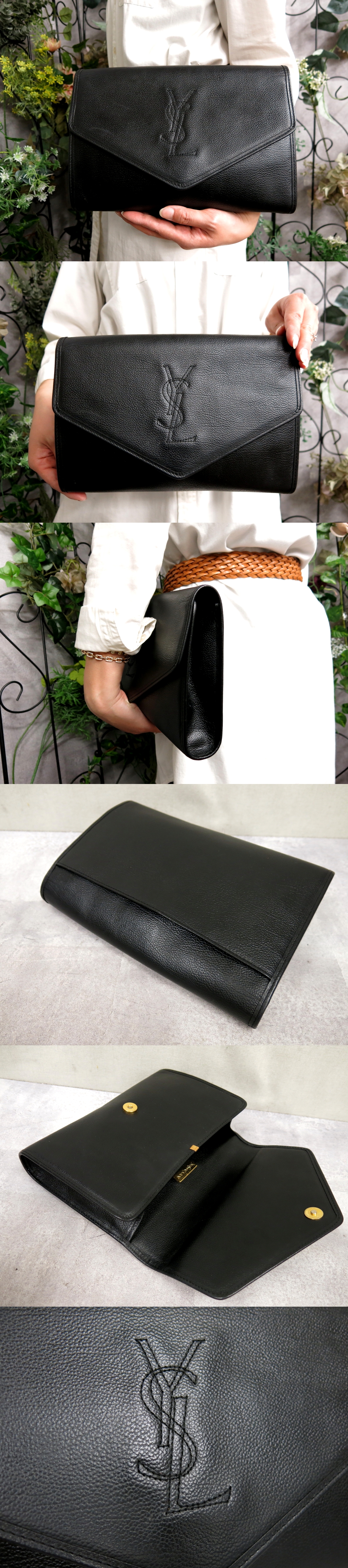 ●超美品●YSL Yves Saint-Laurent イヴ・サンローラン●ロゴ型押し●カーフ レザー 本革●セカンド クラッチ バッグ●黒●G金具●Js57029 收藏