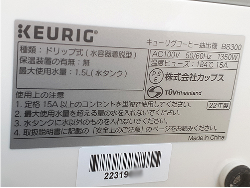 【BS300 キューリグ セラミックホワイト 2022年製】カプセル式 KEURIG コーヒーメーカー コーヒーマシン 紅茶 お茶
