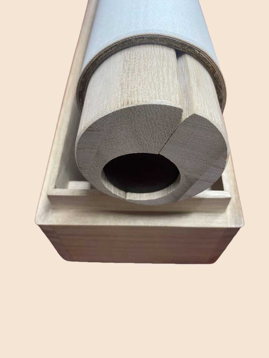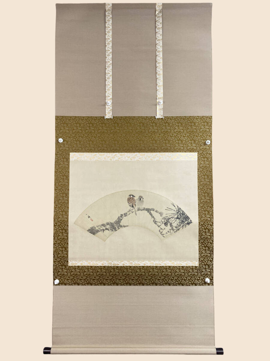 掛軸の軸先ですが、配送中の振動・気温・経年劣化等で外れてしまうことがあります。軸先の外れは、返品の対象にはなりません。大変お手数ですが、お客様ご自身での修復をお願い致します。