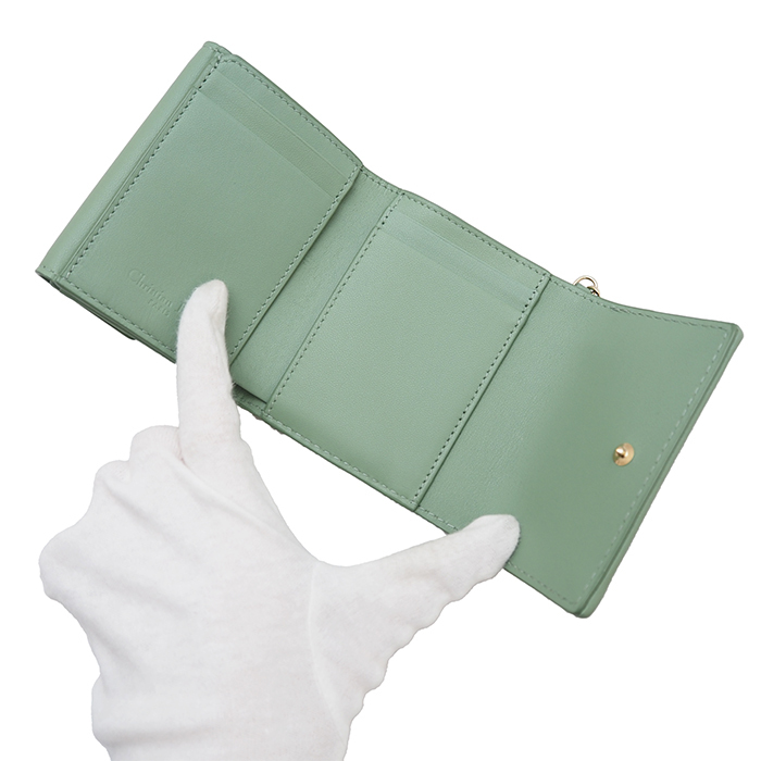 DIOR ディオール レディディオール ロータス ウォレット カナージュ ラムスキン グリーン S0181ONMJ 美品◆中古A+ランク 收藏