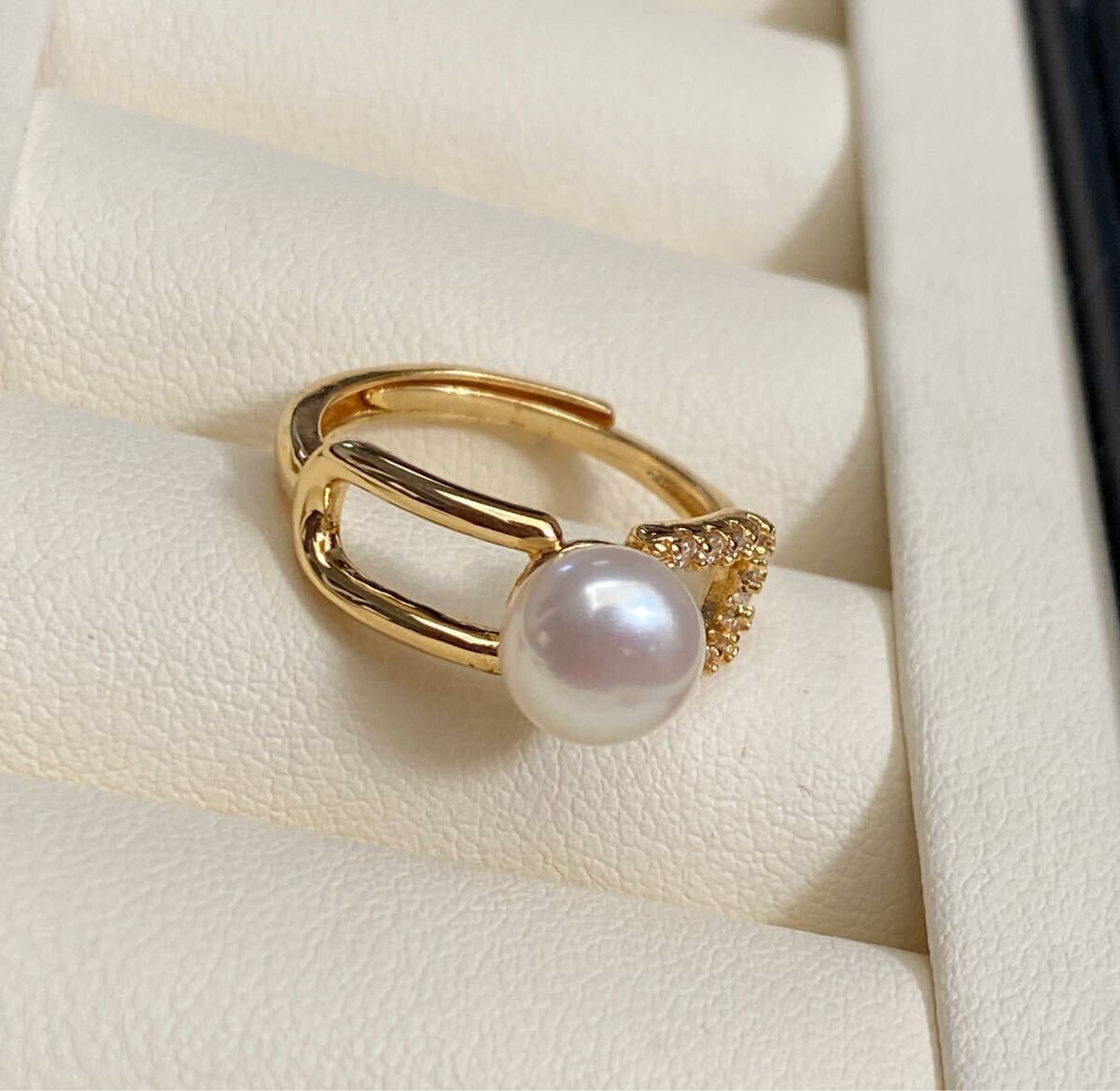 照り抜群 真珠リング 淡水パール フリーサイズリング ホワイト 調整可能 K18GP 收藏