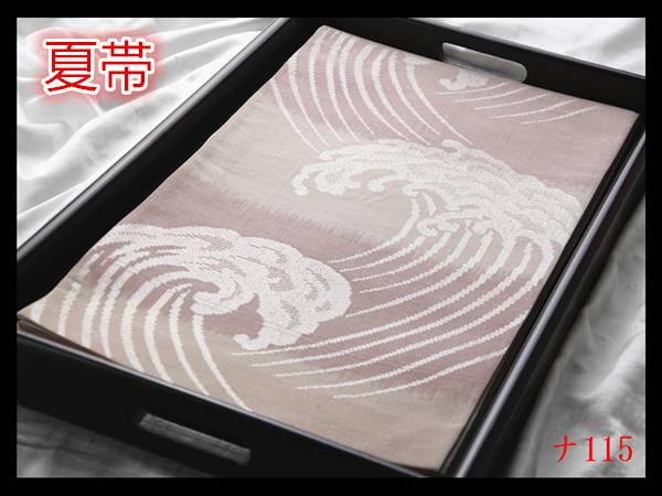 【ナ115】厳選逸品 夏帯 紗 横段波頭紋 鳥の子色薄柿色 透かし 気品豊かに 六通高級美術袋帯 検★着物名古屋帯和装小物帯締め 收藏