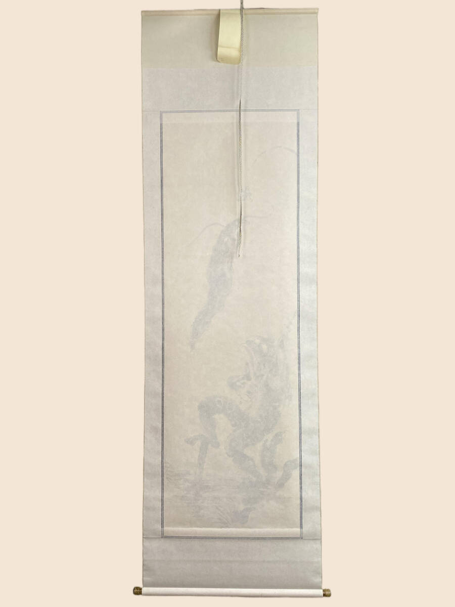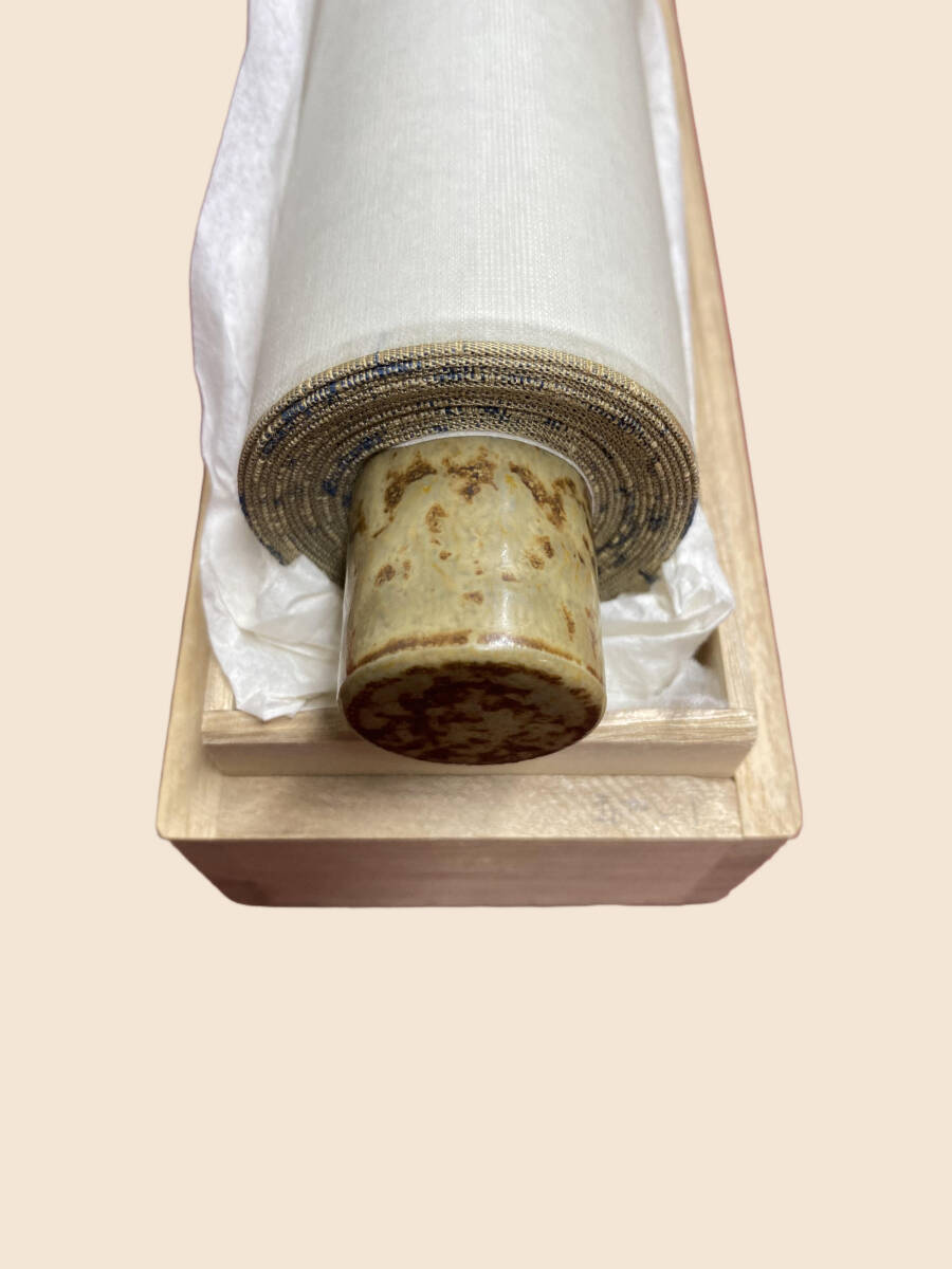 掛軸の軸先ですが、配送中の振動・気温・経年劣化等で外れてしまうことがあります。軸先の外れは、返品の対象にはなりません。大変お手数ですが、お客様ご自身での修復をお願い致します。