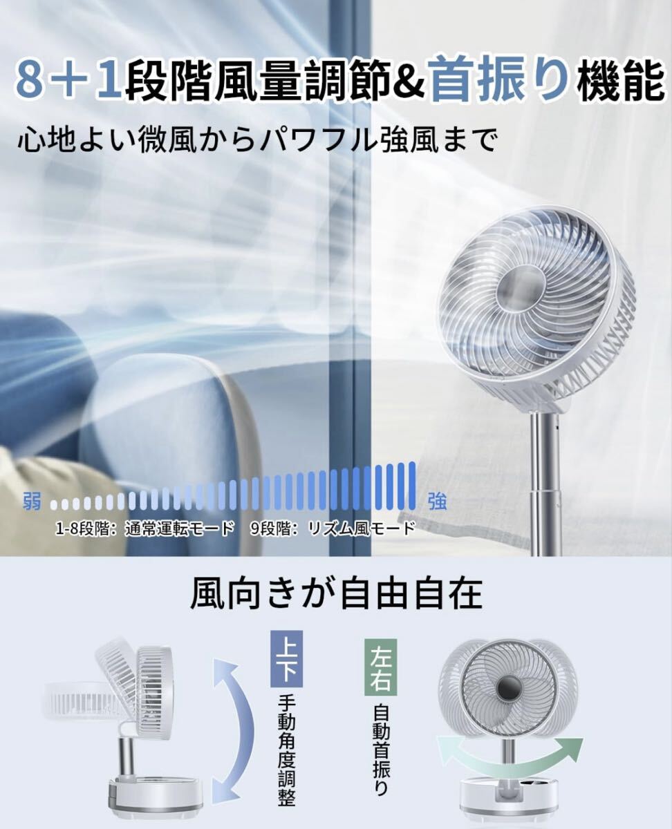 リビング 扇風機 dcモーター 風量8段階調節 リズム風 卓上扇風機 小型 首振り サーキュレーター 静音 USB充電式扇風機 收藏