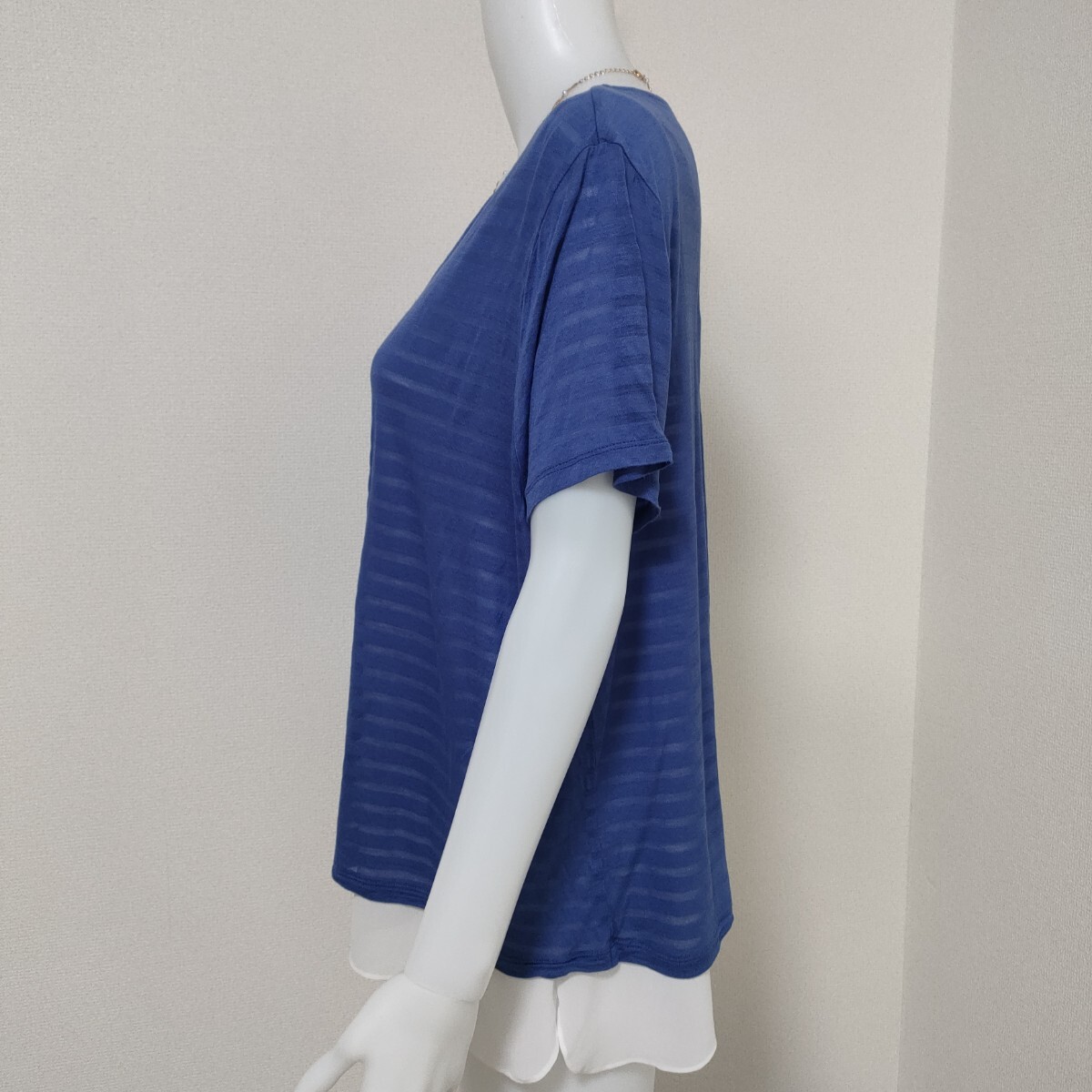 自由区 オンワード樫山 レイヤード風 ボーダーカットソー 40 L レーヨン キュプラ 柔らか 重ね着風 ワイドシルエット ゆったり 收藏