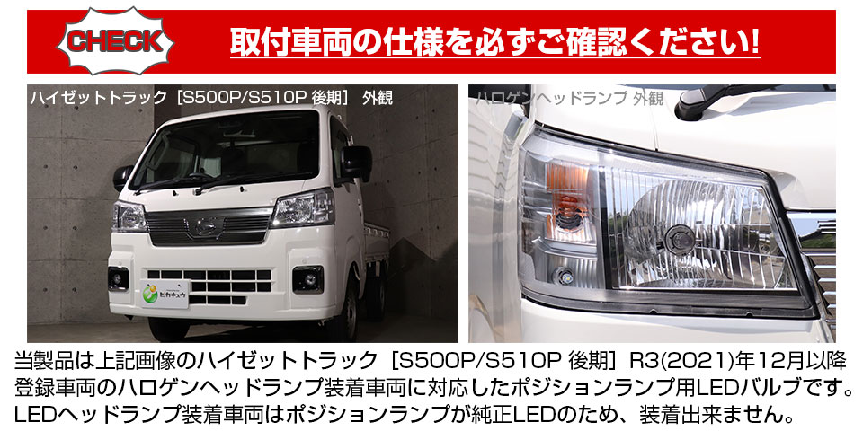 ◆本製品はハロゲンヘッドランプ装着車対応品です。LEDヘッドランプ装着車はポジションランプが純正LEDのため装着出来ません。
