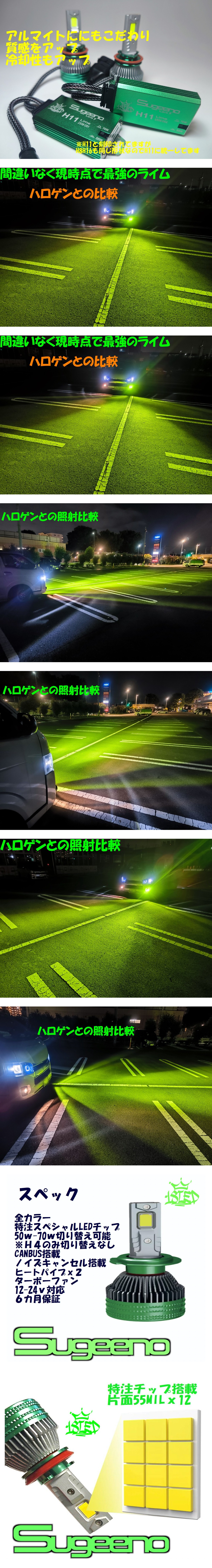 ライム H4 HB3 HB4 H11 H16 H8 PSX26 D2S/D4S D2R/D4R(配線加工HB3ベース)