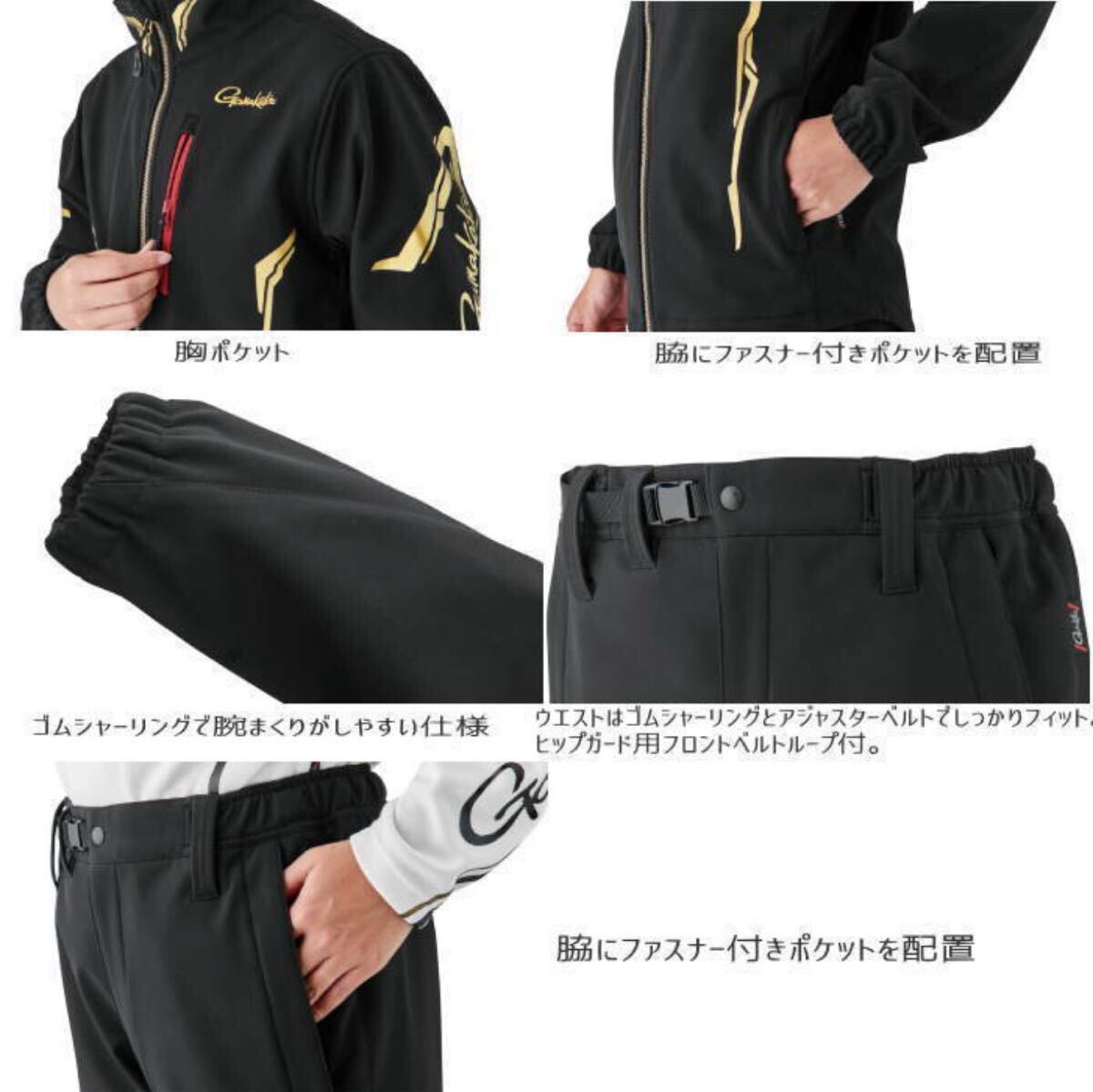 「☆新品・未使用☆ がまかつ ソフトシェルスーツ GM-3764 ブラック/ゴールド LLサイズ 上下セット 定価40,480円(税込)、未使用新品」です。