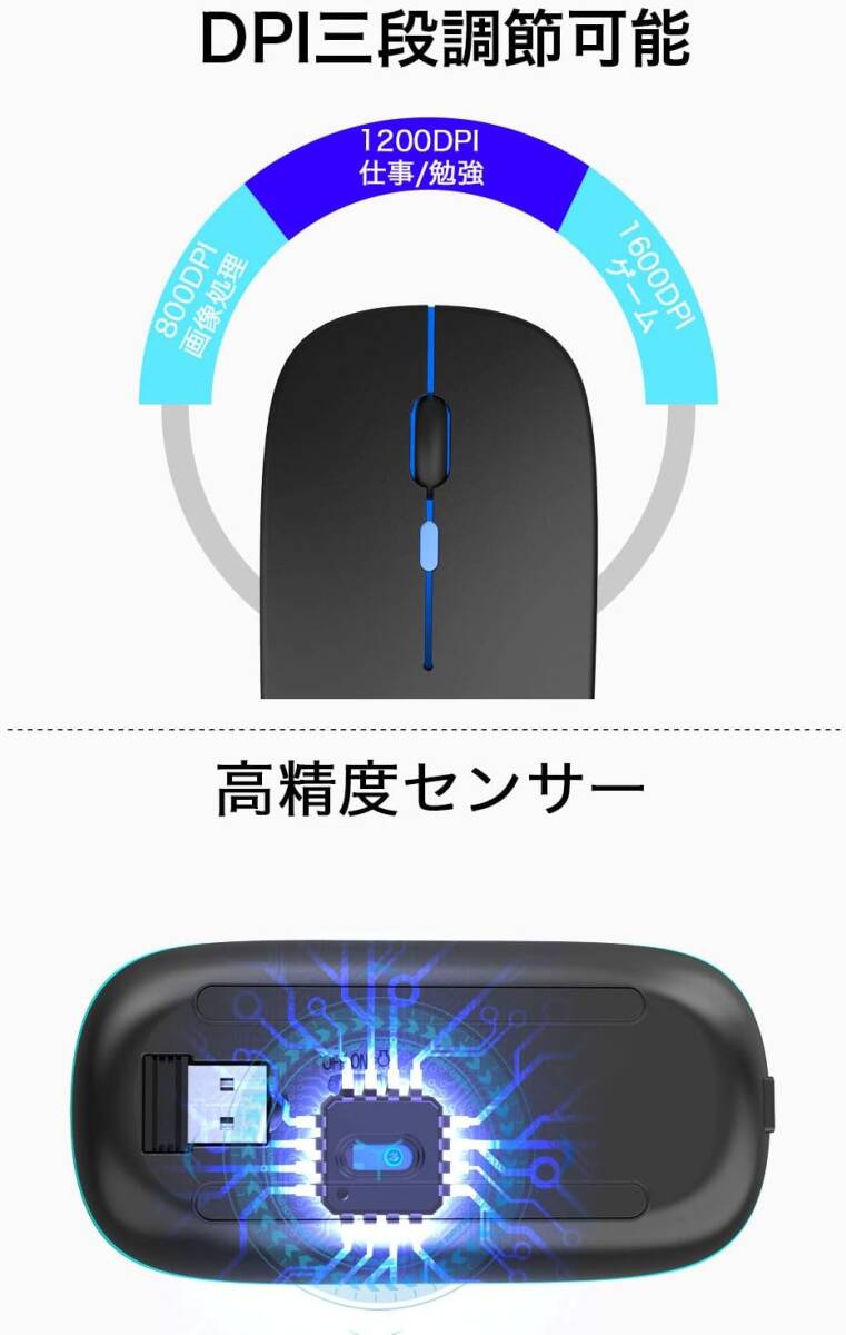 7色ライト付き ワイヤレスマウス 無線マウス コンパクト 超薄型 静音 2.4GHz 800/1200/1600DPI 高精度 省エネモード 持ち運び便利 黒 收藏