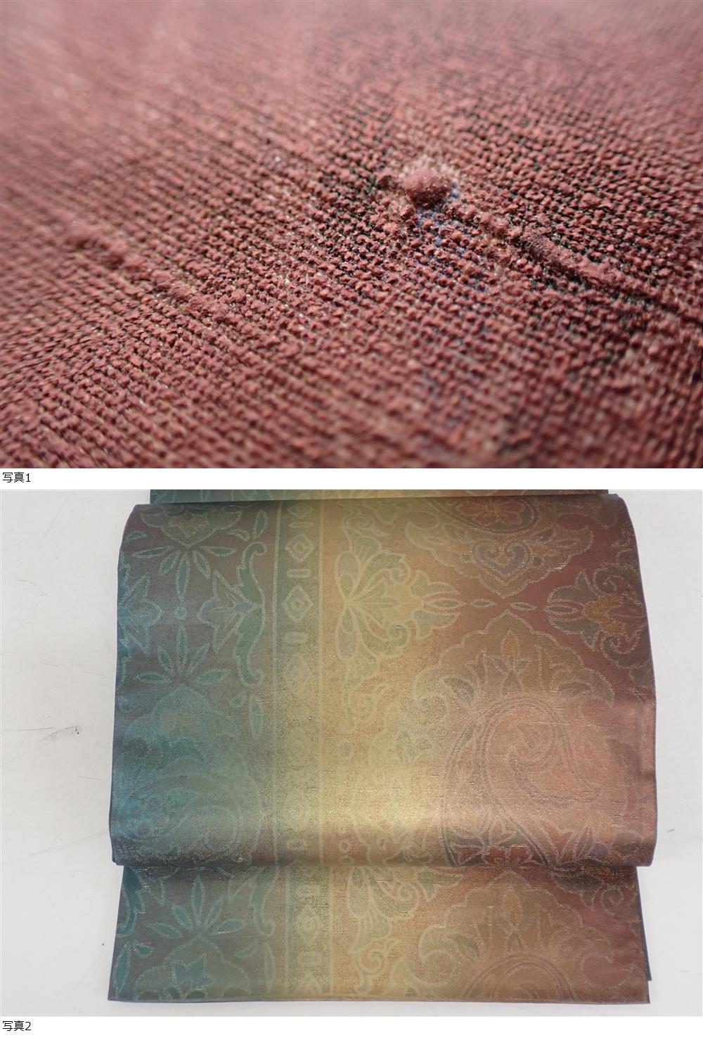 極上 石川県指定無形文化財 牛首紬 白山工房 手織り 全通柄袋帯 31cm×456.5cm 逸品 | ||||