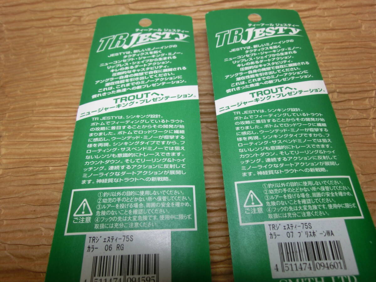 SMITH TR JESTY 75S #06/#07 スミス トラウティン ジェスティ 75mm 7.6g シンキング リップレス ジャーキングミノー★新品 收藏