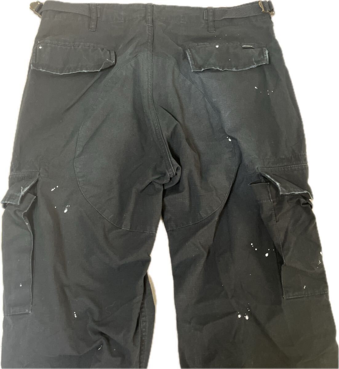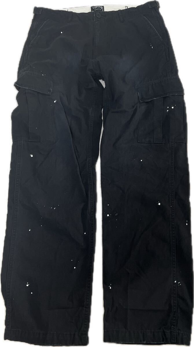 【名作】00s old stussy ペイント加工 カーゴパンツ オールド ステューシー ブラック 黒 サイズ30 ミリタリー メンズ ヴィンテージ 收藏