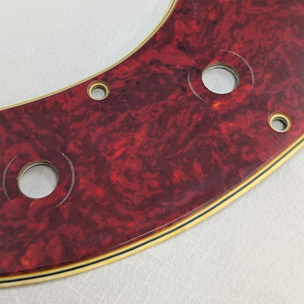 赤べっ甲4PLYのPrecision Bassピックガードに1枚1枚手作業でエイジング処理を施したYJB PARTSオリジナルピックガード。