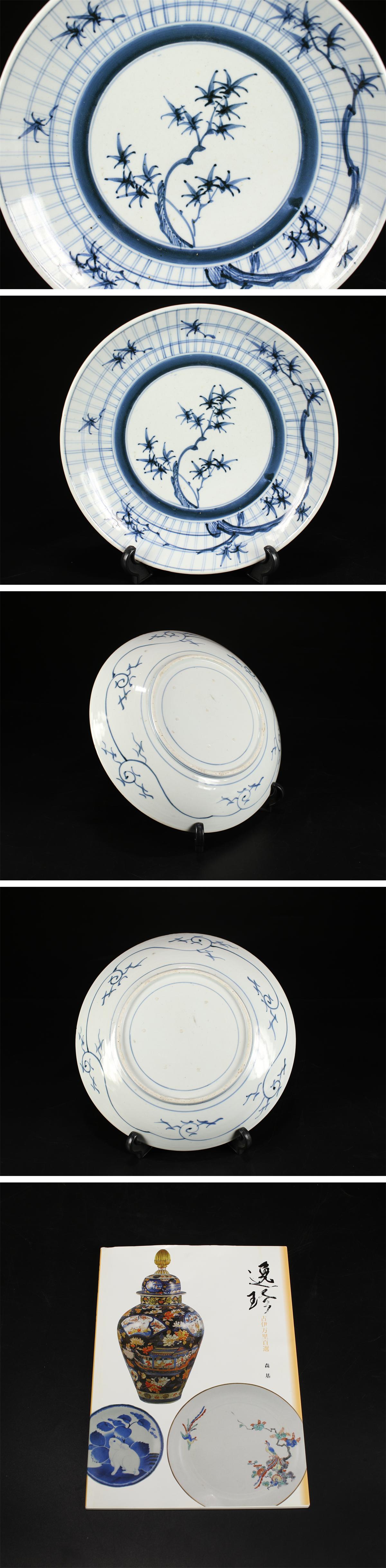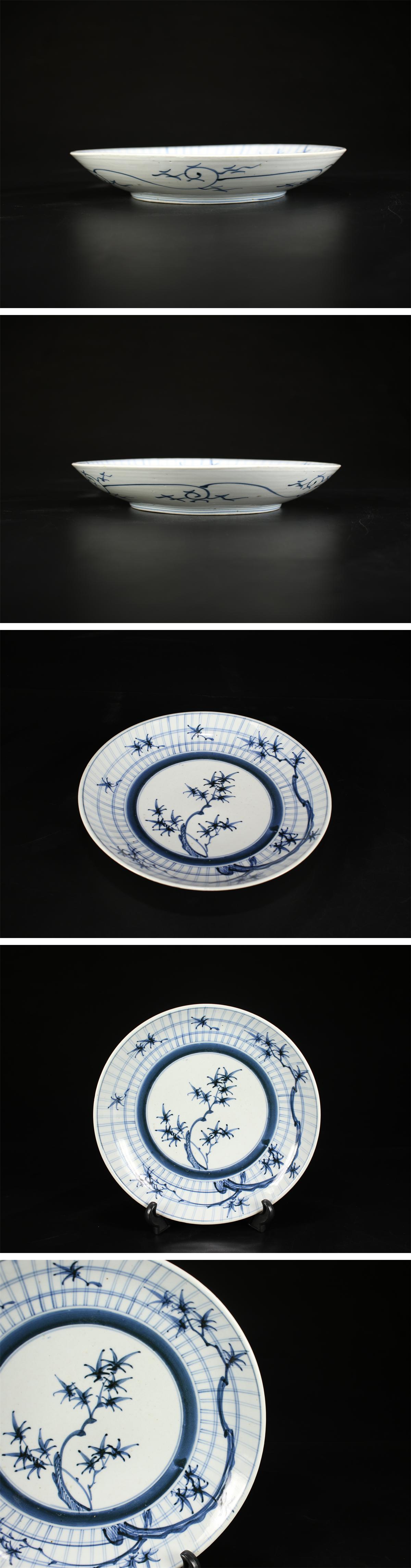 【吉】CK239 書載品 【文政・天保時代】 古伊万里染付 竹紋 大皿 径29㎝/本付 本物保証 美品N! 收藏