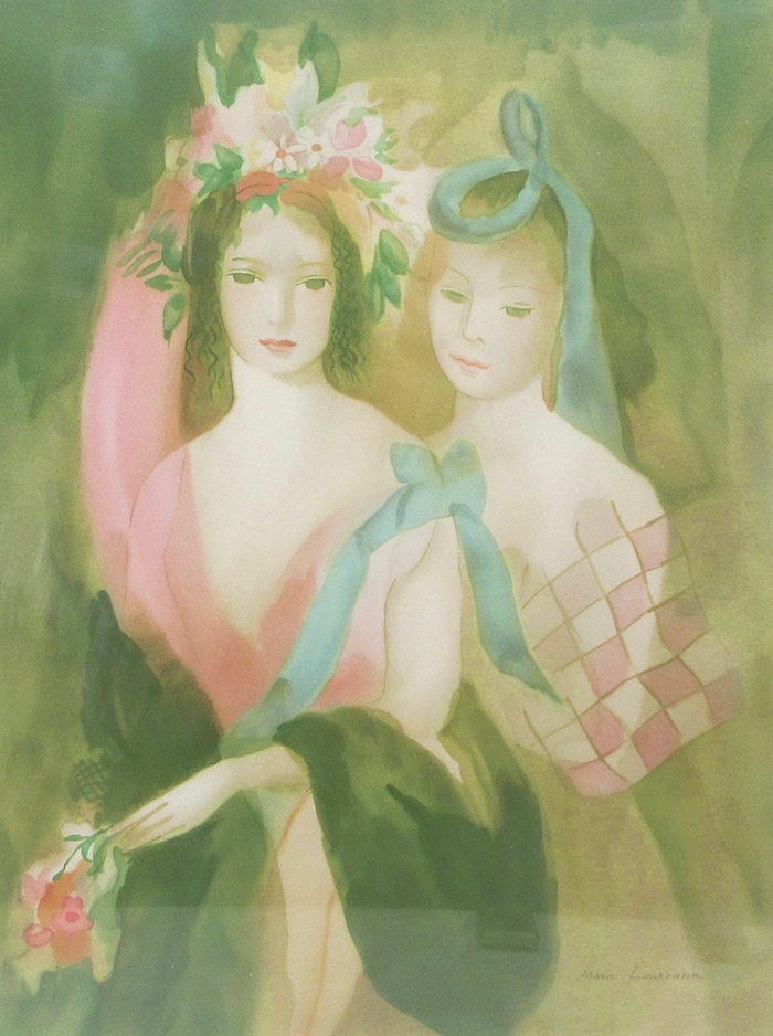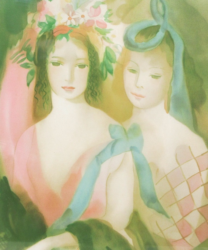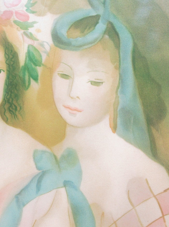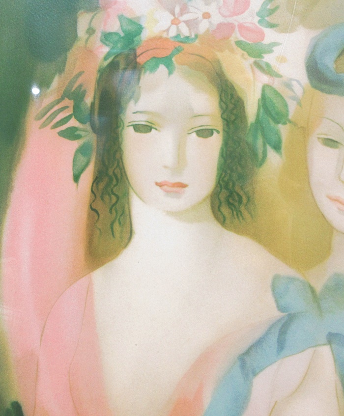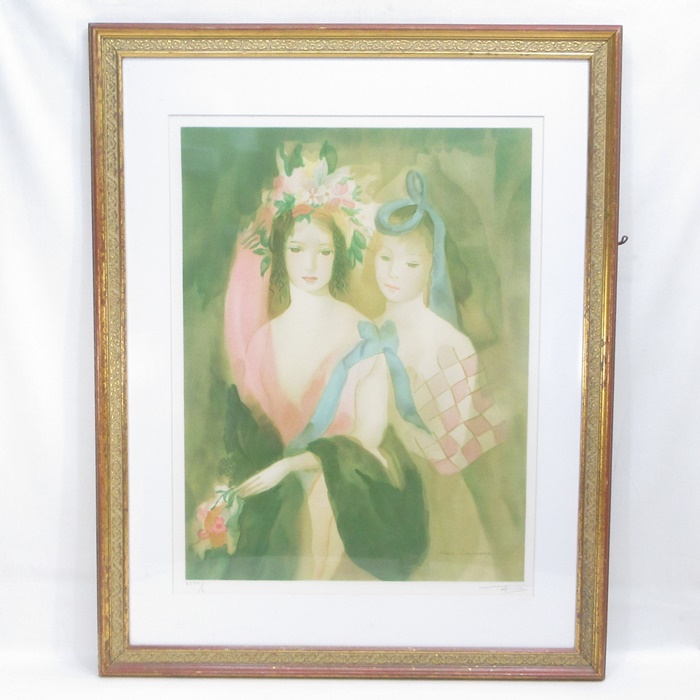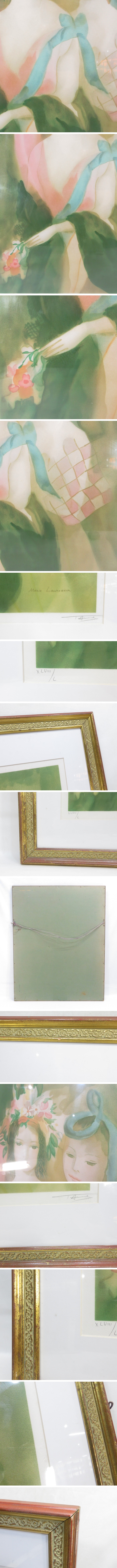 【B0700】 絵画 マリー・ローランサン リトグラフ 『青いリボン』 刷り込みサイン エディション 摺師サインあり 收藏