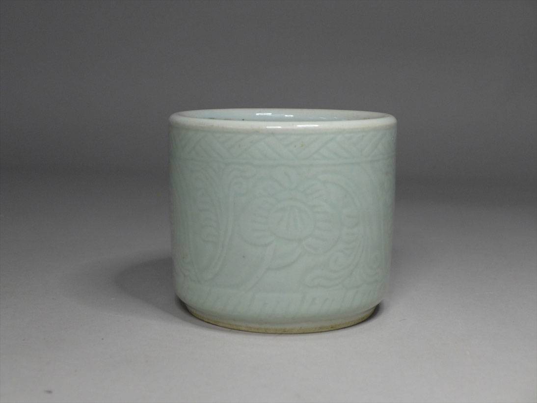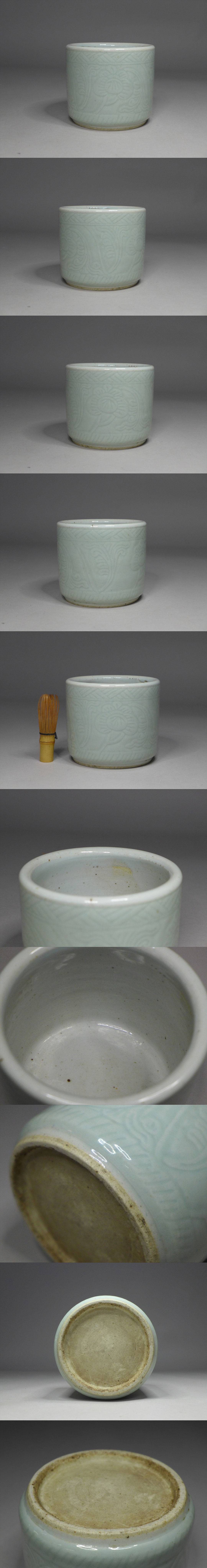 中国古玩 唐物 青磁陽刻牡丹花文香炉 検/天龍寺龍泉