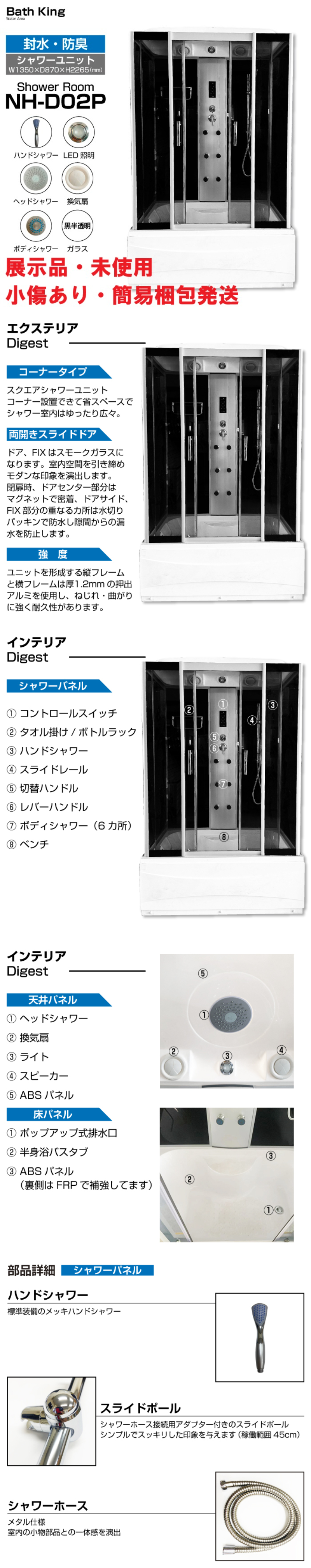 【展示品 訳あり】 シャワーユニット 【NH-D02P】 LEDライト・換気扇 ヘッドシャワー シャワールーム ボックス 收藏