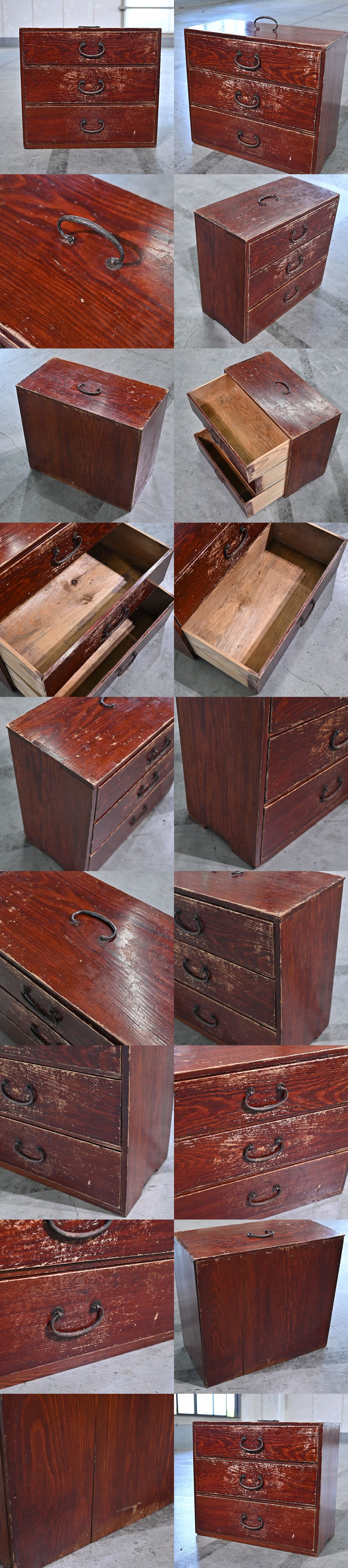和小箪笥 ケヤキ無垢材 3段 収納 引き出し 小物 洋服 卓上 玄関 押入れ 古民家 店舗 欅 アジアン デスク_岩谷堂 仙台民芸 松本 九州 星野 收藏