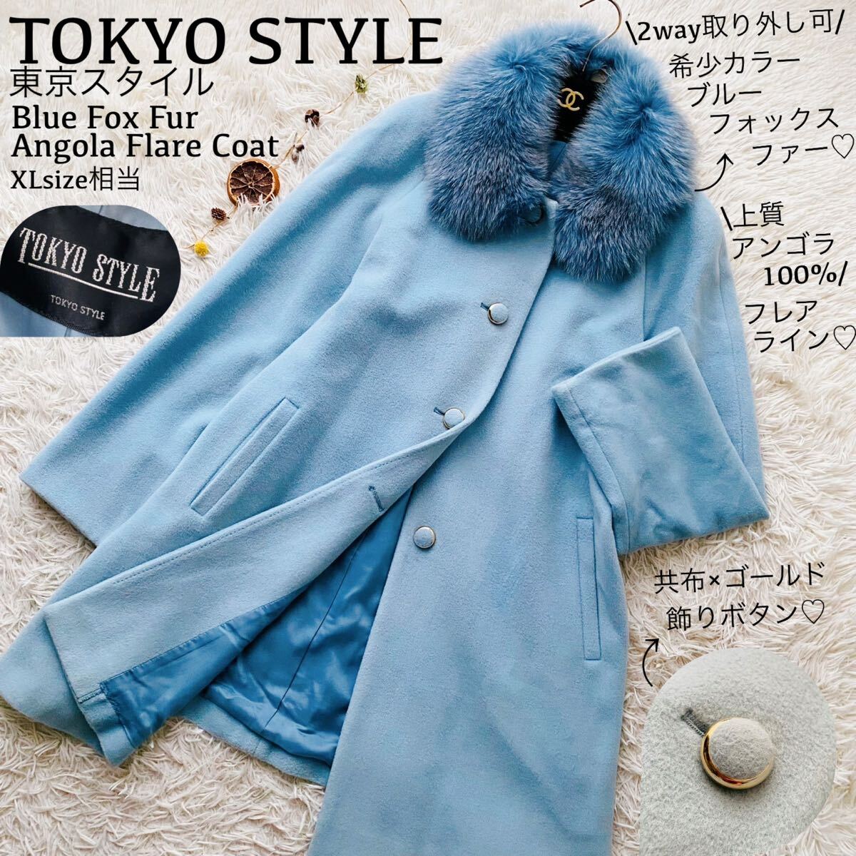 TOKYO STYLE●極美品/希少カラー●アンゴラ100% 東京スタイル 2way ブルーフォックスファー フレアロングコート 共布×ゴールドボタン XL 收藏
