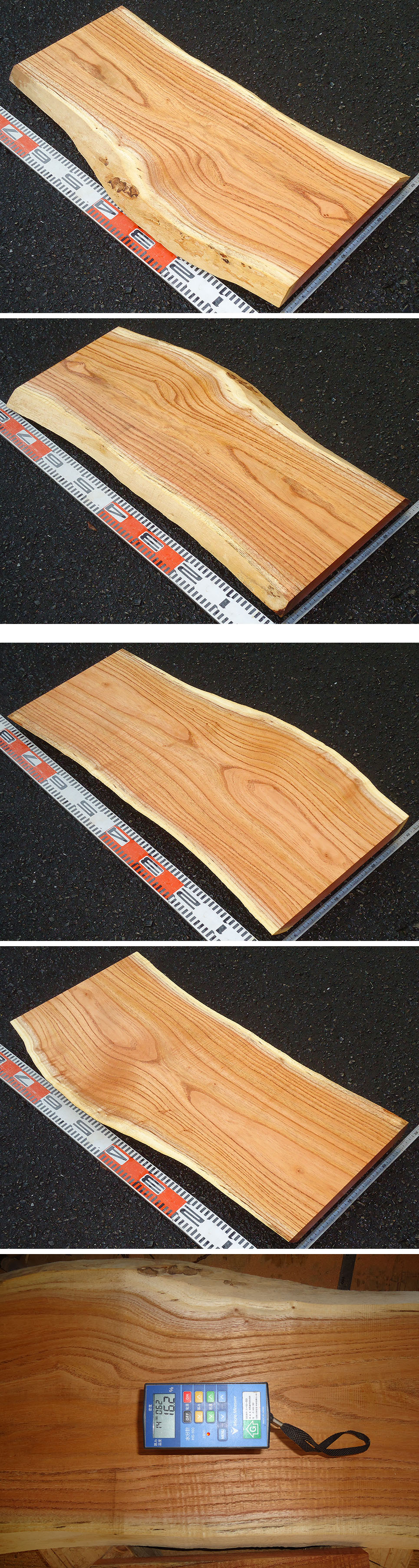 ・両面ほぼ無節で茶ピンク色、くっきりした杢目が美しい素材です。