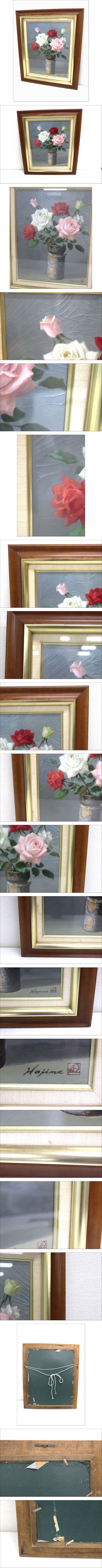 ZS691【真作】Hajime/田村一 画題「備前と薔薇」 油彩画/油絵/絵画 花/静物画 アート 額縁/額装/額付き 壁掛け インテリア 現状品 | |||