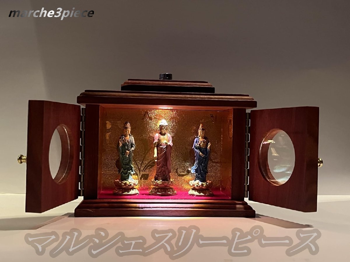 西方三聖 (阿弥陀如来・観音菩薩・勢至菩薩)立像 極小仏 厨子入り仏像 阿弥陀三尊 收藏