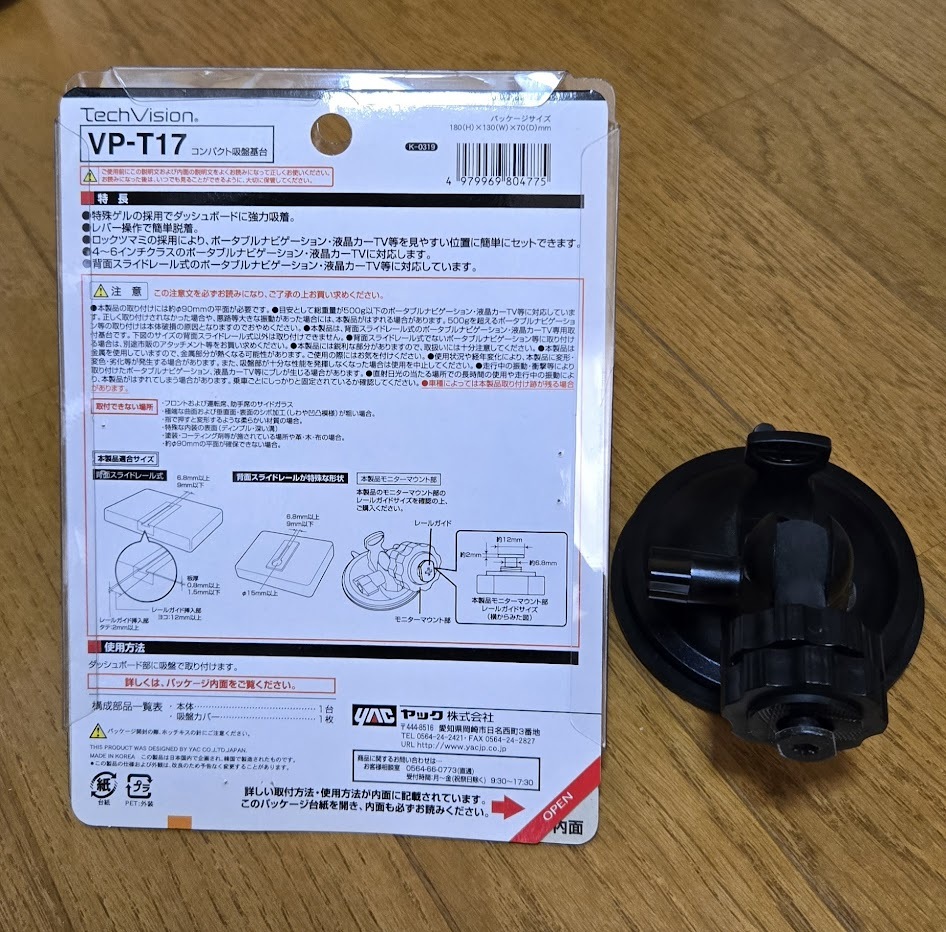 ★中古 mini GORILLAに 取付土台セット YAC VP-T17 コンパクト吸盤基台 SEIWA P133 PNDモニターアダプターM★ 收藏