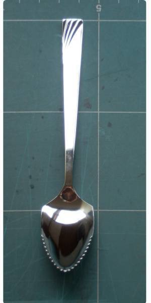 | ☆グレープフルーツなど果肉が多い果物を食べるときに 取り出す時に便利なスプーンです。 ☆皿のツボがコーヒースプーンよりも多少浅くて 両脇のギザギザで果肉を切り出しながら食べます。 ☆業務用や会社関係でも同じ柄で揃えることもできます。 ☆材質は錆びにくい18-8ステンレス製です。 ☆スプーンの大きさは1本の全長が約134ミリで 測り方にもよりもツボの広いところが幅約25ミリで長さが約45ミリです。 重さが20グラム弱あります。 ☆落札代金と送料を合わせた金額で領収書も発行し同封します。 ○同じデザインのコーヒースプーン・姫フォークなども出品しております。 ご一緒にいかがでしょうか。 | ||