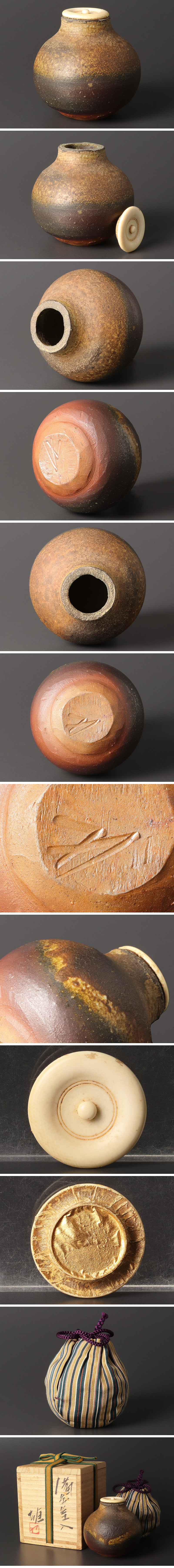【古美味】人間国宝 藤原雄 備前茶入 茶道具 保証品 |