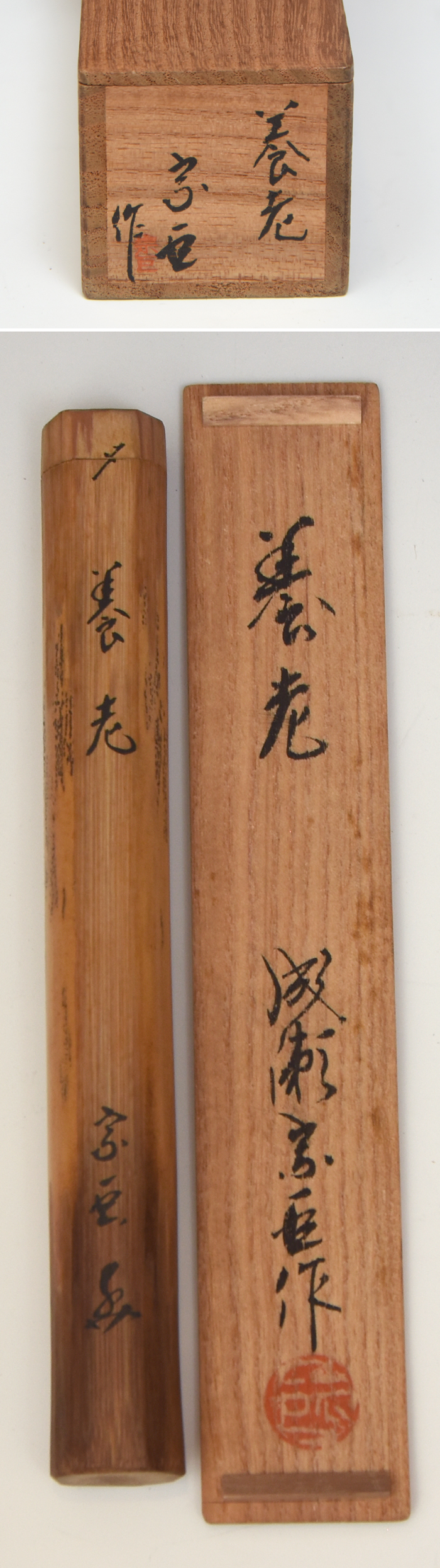 成瀬宗巨(作)茶杓 銘「養老」 共筒 共箱 茶匙 茶道具 竹芸 竹工芸 木工芸 |