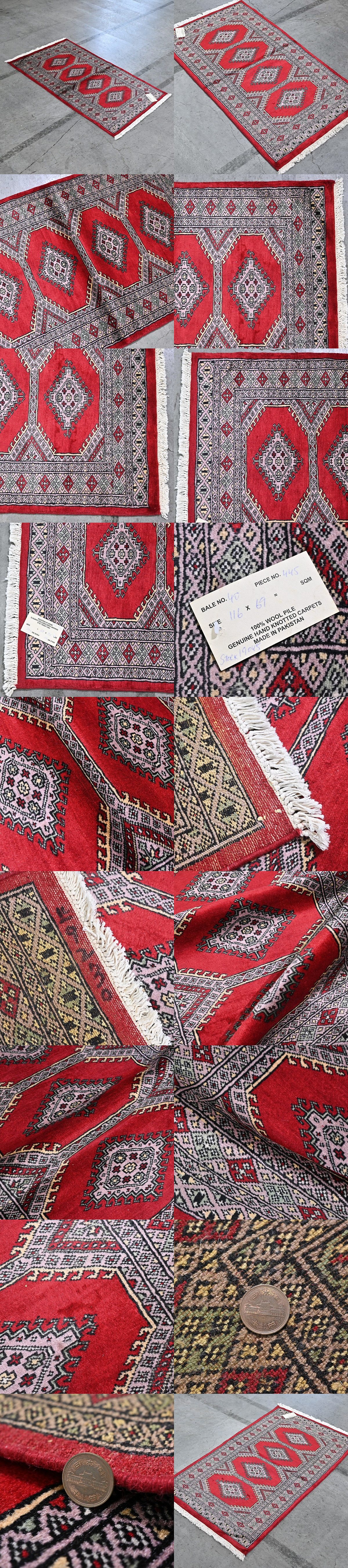 新品 未使用 パキスタン製 手織り ウール絨毯 ラグ ボハラ柄 ギュル文様 ハンドノット 羊毛 カーペット マット ホテル 応接室 P-93 收藏