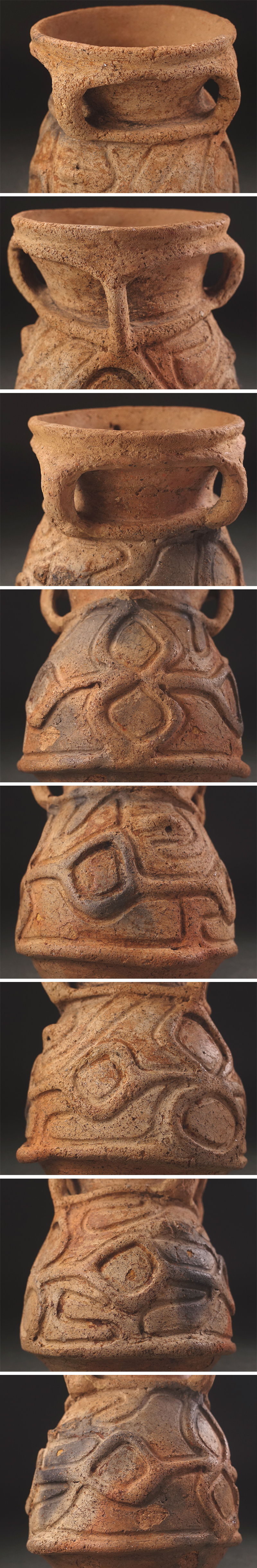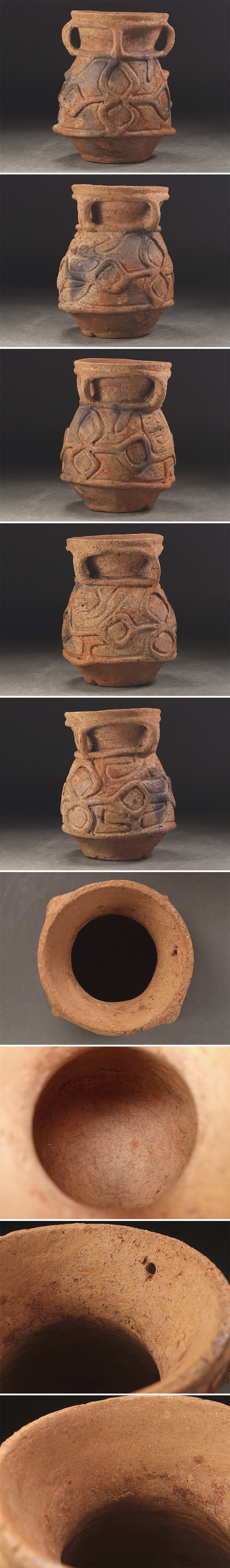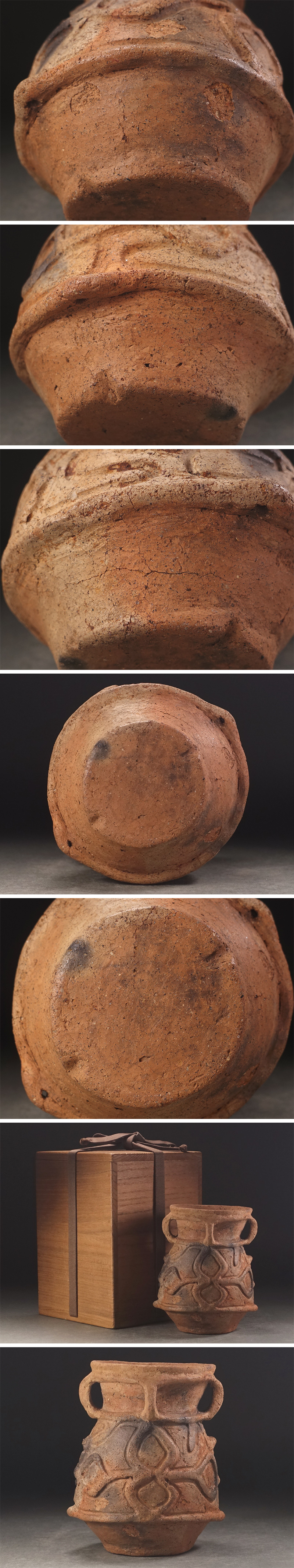 ∇花∇縄文時代中期 関東地方 加曾利E式 橋状把手付壷形土器 小壺 発掘出土品 收藏