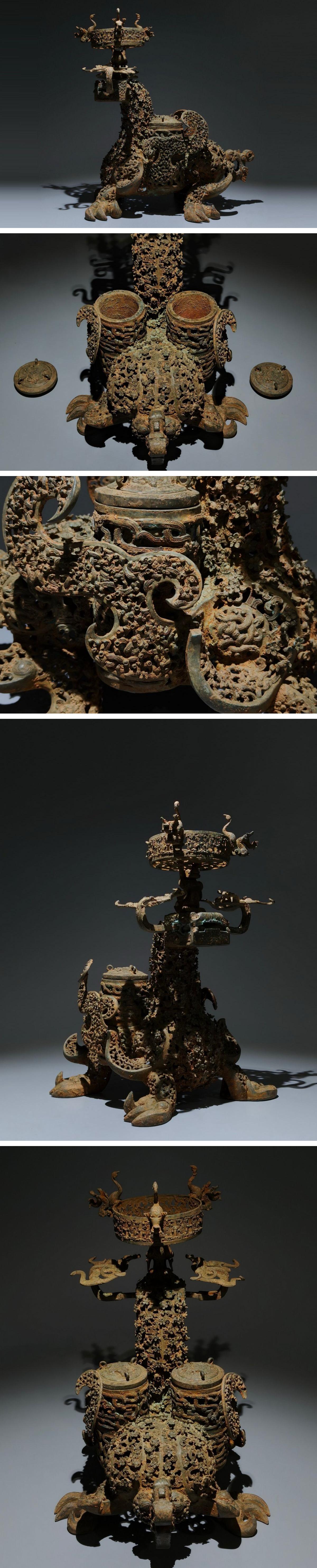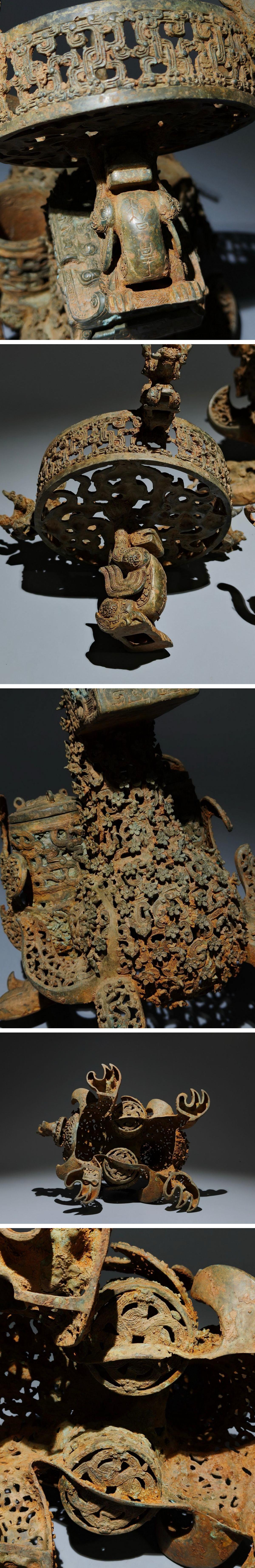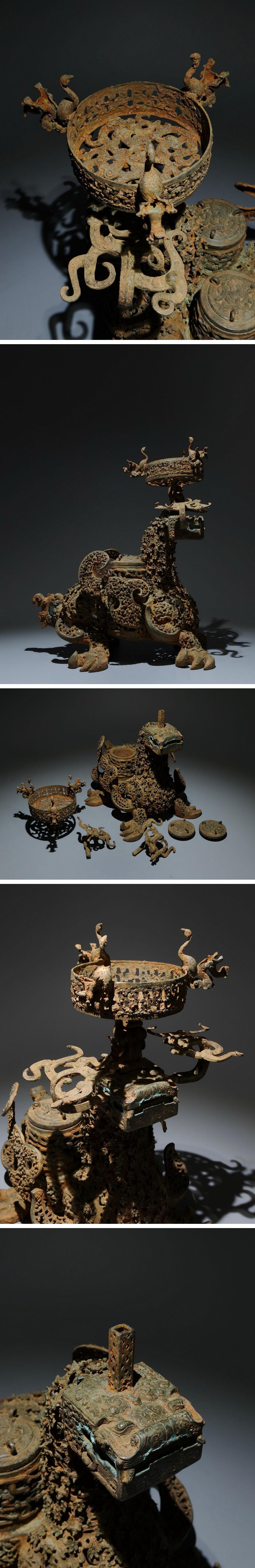 【清】某有名オークション購入 戦漢時代 青銅器 龍梅花紋巨大燭台 古置物 古擺件 古美術 時代コレクション7L9-IG14 收藏