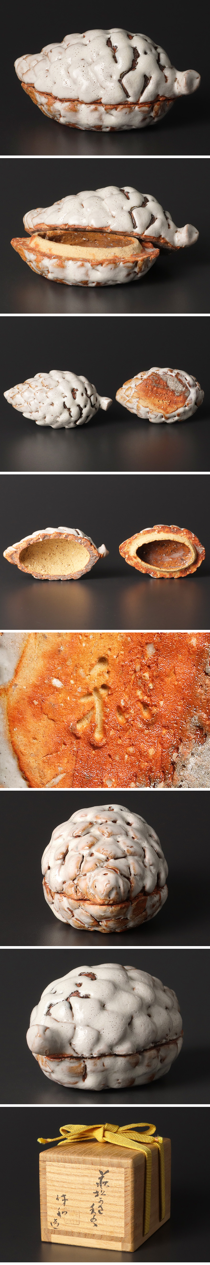 【古美味】人間国宝 三輪休和(十代三輪休雪)造 萩松かさ香合 茶道具 保証品 |